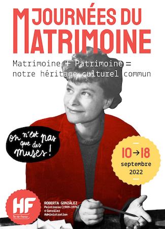 La figure Matrimoine 2022 est Roberta González (1909-1976), peintresse, entre figuration et abstraction, dans l’ombre de son père le sculpteur Julio González et de son mari, le peintre Hans Hartung. À ses côtés, on retrouvera de nombreuses autres créatrices : l’architecte Juliette Tréant-Mathé, des compositrices comme Maria Szymanowska, des poétesses comme Marceline Desbordes-Valmore, la dramaturge Françoise Pascal, l’archéologue Christiane Desroches-Noblecourt, l’autrice philosophe Monique Wittig, des photographes de guerre, salonnières, sculptrices, graveuse, chorégraphe, Gisèle Halimi en tant qu’autrices bien d’autres encore…