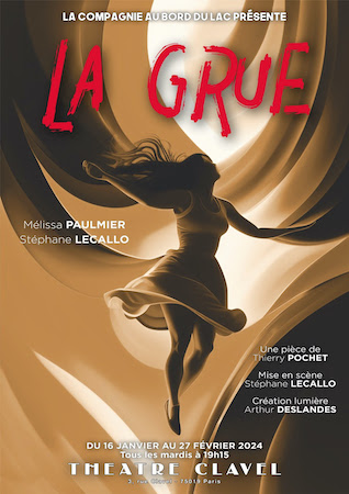 Du 16 janvier au 27 février, le théâtre Clavel accueille chaque mardi soir “La Grue”, une création inédite de La Compagnie Au bord du lac, portée par l’écriture habile et juste de l’auteur Thierry Pochet, et le jeu subtil et rythmé de la comédienne Mélissa Paulmier et du comédien-metteur en scène Stéphane Lecallo.