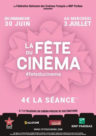 Du dimanche 30 juin au mercredi 3 juillet, La Fête du Cinéma aura lieu partout en France ! Durant ces 4 jours, profitez de toutes les séances à 4€ dans les cinémas participants !