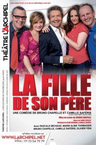 La fille de son père De Bruno Chapelle et Camille Saferis Mise en scène de Bruno Chapelle Avec Bruno Chapelle, Pascale Michaud, Camille Saferis, Marie- Aline Thomassin et Olivier Yeni Du 29 septembre au 7 janvier 2016 Tarifs: Cat.1: 22€ // Cat.2: 17€ // Cat.3: 12€ Placement par des ouvreurs, salle numérotée Réservations par tel. au 01 73 54 79 79 Théâtre L’Archipel |
