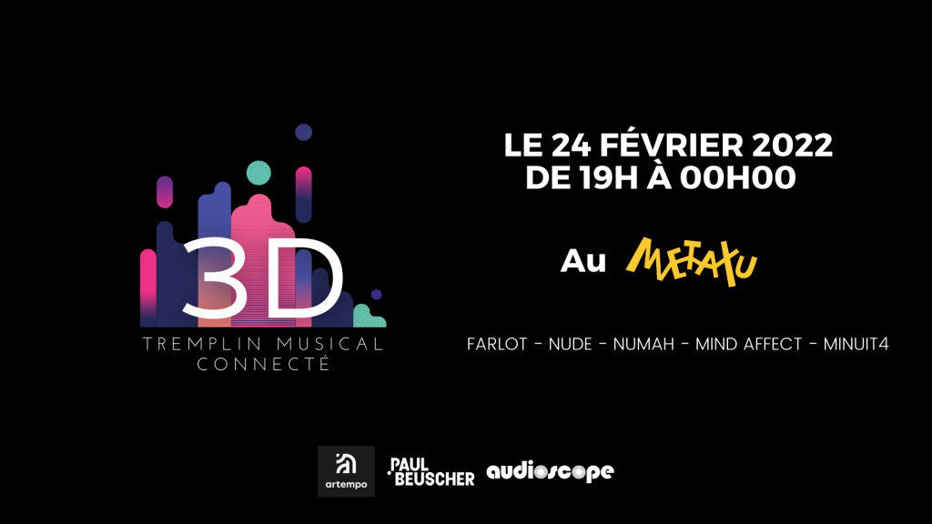 L’équipe 3D vous propose un tremplin musical, connecté et fédérateur. Après un appel à candidatures en ligne et une procédure de vote numérique, l’équipe vous attend pour soutenir vos artistes préférés lors d’un live organisé sur la péniche Metaxu, à Pantin, le 24 février prochain.