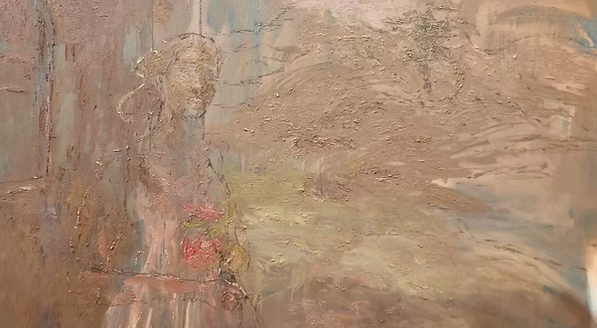 Dans ses œuvres, le portrait n’est jamais figé : il oscille entre apparition et dissolution, entre construction et effacement. Inspiré par les tonalités et la lumière de la Renaissance, Midegbeyan Ojisua compose une palette terreuse et vibrante, où les beiges, ocres et gris se mêlent à des touches incandescentes de rouge ou d’orange. Cet équilibre fragile confère à ses figures une densité organique, comme si elles étaient sculptées directement dans la peinture, prises dans un état de mutation perpétuelle, entre présence et effacement, comme des réminiscences visuelles en suspens.