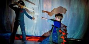 La distribution des rôles opérée et les décors dévoilés, le groupe répète ensuite chaque scène de cette légende. Aidés de costumes, d’une bande son, de lampes, de spots et autres sources lumineuses, les enfants font naitre un univers fantastique grandeur nature, peuplé de prince, princesse, monstres et dragons, d’ombres projetées et de lumières.