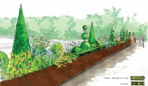 [Visuel : Simulation des plates-bandes installées dans le fer à cheval des Tuileries – © Jardins de Gally / Amélie Fontens]