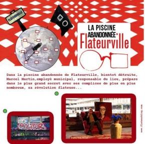 A 19h, vous découvrez la piscine Molitor, vous buvez un coup chez René, grignoter quelques dinettes chez les lascars, à 21h30, son gardien municipal, Marcel, vous raconte son village et vous invite à sa revolution et pour finir, un petit dance floor flateur où vous pourrez donner libre cours à votre créativité. Une sacré soirée flateuse en perspective ! A Flateurville j’y vais quand je veux mais avec toi c’est mieux…
