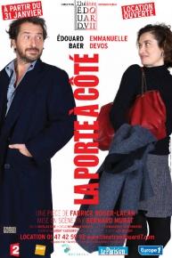 La Porte à côté De Fabrice Roger-Lacan Avec Emanuelle Devos et Édouard Baer Du mardi au vendredi à 21h Plein tarifs : 1ère cat. 55€ // 2ème cat. 49€ // 3ème cat. : 41€, 4ème cat. : 30€ et 5ème cat. : 20 € // (+ 2,50 € de frais de réservation par place) Réservation en ligne ou par tél. au 01.47.42.59.92 Théâtre Edouard VII |
