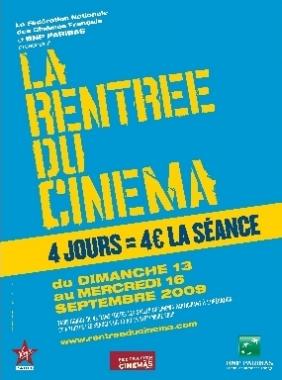 La Rentrée du Cinéma revient dans les salles avec une nouvelle formule optimisée sur 4 jours : les dimanche 13, lundi 14, mardi 15 et mercredi 16 septembre 2009. Avec une journée supplémentaire par rapport à la formule de l’an dernier, La Rentrée du Cinéma intègre un mercredi, ce qui permet au public d’avoir accès à un choix de nouveaux films encore plus important avec l’ensemble des nouvelles sorties !