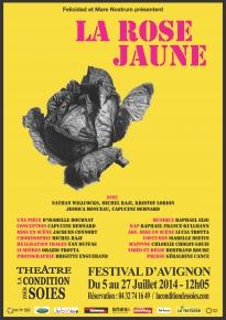 La Rose Jaune Pièce d’Isabelle Bournat Du 5 au 27 juillet 2014 à 12h05 Durée: 1h20 Tarifs: 17 euros à 9 euros Rencontre à l’issue des représentations : Isabelle Bournat, auteur (5 & 6 juillet) Théâtre La Condition des Soies |