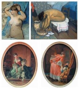 [Source texte : dossier de presse – Crédit visuel : Edouard Manet, Femme nue se coiffant – 1879 / Théophile Alexandre Steinlen, Le bain – 1902 / François Boucher, La Gimblette – 1742 / François Boucher, L’enfant gâté – 1742 / Alain Jacquet, Gaby d’Estrées – 1965 / Eugène Lomont, Jeune femme à sa toilette – 1898]