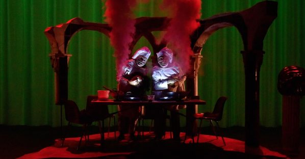 Rien d’étonnant donc à ce qu’elle trouve un écho auprès de la compagnie du ZEREP, dirigée par la plasticienne de formation Sophie Perez, dont la particularité est d’explorer un théâtre délibérément affranchi de la moindre hiérarchie, « où bordels populaires et raffinements avant-gardistes sont renvoyés dos-à-dos pour mieux en éprouver les mystères et les mystifications ». La vengeance est un plat. est une exploration éclairée, métaphorique et très personnelle de Titus Andronicus. La scénographie et les costumes signés Sophie Perez plantent une sorte d’esthétique maudite, entre pénitents affairés, têtes coupées, marching band hypnotique, colonnes antiques et ruines grandioses, on assiste à un carnaval psychique, une parade antique sans concessions.