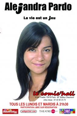 Entre stand-up et théâtre « la vie est un jeu » est une allégorie de la vie où tout est exagéré et chaque cliché poussé à son extrême. Alejandra Pardo s’inspire de ses origines sud-américaines pour dépeindre des portraits et des situations avec humour et autodérision. Entre el maestro del teatro, le danseur de tango, le latin-lover, la révolutionnaire colombienne, et bien d’autres, Alejandra Pardo tente de démontrer que la vie est riche de rencontres, de situations en tous genres, de personnages loufoques et qu’il est bon de prendre le meilleur de chaque instant, de le tourner à son avantages, comme dans un jeu stratégique. Bien sûr parfois nous perdons, mais rien n’est figé, la vie nous réserve souvent des surprises. A nous de jouer.