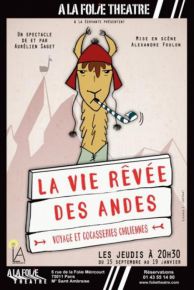 Envie de passer une soirée à 11 000 km de Paris en 1h10 ? Un voyage à l’autre bout du monde, en seulement 1h10 ? C’est le pari d’Aurélien Saget et d’Alexandre Foulon grâce au spectacle « La vie rêvée des Andes » ! Inspiré de ses carnets de voyage, ce spectacle seul- Dans une véritable performance, le comédien y interprète avec humour et sensibilité une dizaine de personnages hauts en couleur, qui nous transportent en plein cœur de l’Amérique Latine d’aujourd’hui. Un spectacle à découvrir seul, entre amis ou en famille jusqu’au 19 janvier 2017 ! |
