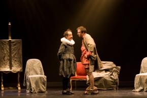 « Dans ma vision scénique de l’Avare, Harpagon erre avec force et énergie dans sa maison hantée par l’avarice où chaque meuble et chaque objet est protégé de l’usure par un tissu gris qui habille également ses fantômes de serviteurs. Pour que le comique de la cruaut d’Harpagon s’exprime au delà de son comportement maladif et son discours tyrannique, il me semble important de mettre en lumière l’humanité de son entourage et les caractères beaucoup plus complexes qu’ils ne paraissent, de ces personnages dit secondaires. Enfin je veux que la pièce se joue au rythme soutenu de son personnage principal dont l’excellente santé physique porte furieusement les décombres de sa santé mentale. »