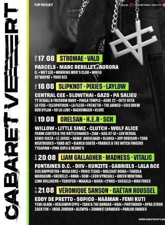 Le Cabaret Vert est -enfin- de retour! Avec une centaine d’artistes programmés et une édition enrichie d’une journée supplémentaire, jamais le festival n’avait affiché pareilles promesses. Se croiseront notamment cet été à Charleville-Mézières : légendes indémodables (Slipknot, Pixies, Madness…), blockbusters francophones (Stromae, Orelsan, VALD…), pointures urbaines (H.E.R, Laylow, SCH…), folies électroniques (Vitalic, Paula Temple, La Fleur…), guitares sorties du garage (Franck Carter, Ty Segall, Fontaines D.C., Working Men’s Club…), figures californiennes (Gabriels, Willow…), relève rock tricolore (Parlor Snakes, Johnnie Carwash…), nouvelle génération pop (Aurora, Eddy de Pretto, Marc Rebillet…), voix françaises éternelles (Véronique Sanson, Gaëtan Roussel…) et même, l’ultime rock’n’roll star de notre époque (Liam Gallagher). De quoi combler les têtes et les jambes des festivaliers les plus fidèles comme des petits nouveaux.
