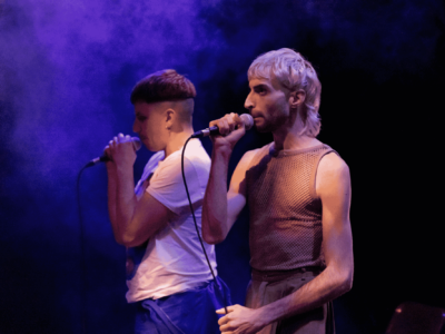 Mais au fait, qu’est-ce qui fait pédé.e ? C’est la question que met en scène Lucien Fradin accompagné par la musicienne Mia Ottin et le vidéaste Pablo Albandea. Cette performance kaléidoscopique est un collage de matières textuelles, visuelles et sonores produites par des pédé.e.s, des gays et des bis pour parler des pédé·e·s et de leurs ami·e·s. Le thème est dans le titre, les initiales de Portraits Détaillés, ça fait pédé. Sur scène, les trois interprètes, habillés par Léonor Boyot Gellibert, dressent ainsi un portrait sensible d’une communauté protéiforme, ses enjeux sur les questions de genre et ses multiples désirs.