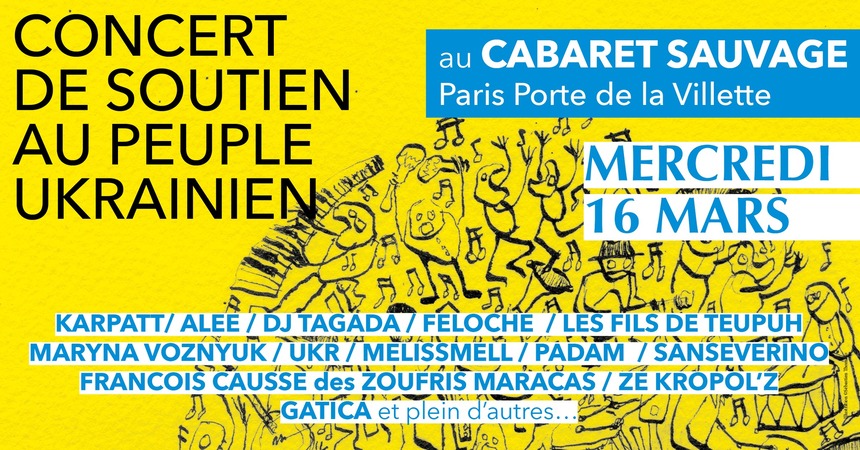 Le groupe Karpatt a pris l’initiative d’organiser un concert le mercredi 16 Mars au Cabaret Sauvage en compagnie de plusieurs artistes afin de récolter des fonds pour venir en aide au peuple ukrainien.