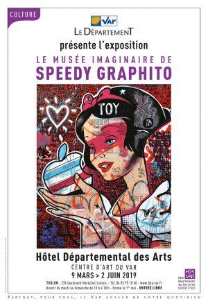 Pendant trois mois, le centre d’art du Département du Var à Toulon dédie l’ensemble de ses espaces au street-artiste français Speedy Graphito. Pour cette exposition monographique l’artiste s’approprie l’imagerie populaire qu’il détourne de façon ludique et propose au visiteur de pénétrer dans son musée imaginaire.