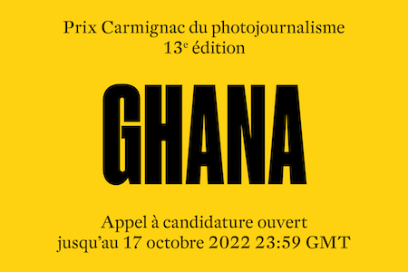 La 13e édition du Prix Carmignac du photojournalisme est consacrée au Ghana et à ses défis écologiques et humains. Sélectionné par un jury international, le·la lauréat·e recevra une bourse de 50,000 € pour produire un reportage photographique avec le soutien de la Fondation Carmignac, qui financera à leur retour une exposition itinérante accompagnée d’une monographie.