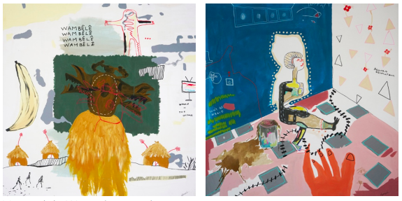 (1) Wambêlê, 2021, acrylique sur toile / (2) Trois pensées, 2021, acrylique sur toile