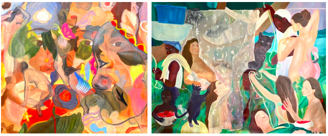 (1) Nature vivante, 2022, huile et pastel sur toile / (2) Au pays d’Eve, 2022, huile sur toile