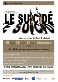 Marie-Do Fréval propose ici une libre adaptation de cette tragi-comédie russe, écrite en 1928, pertinente tant dans sa problématique que dans son écriture. Cette pièce forte et burlesque développe le parcours d’un anti héros « Simon Simonovitch Podsékalnikov », un homme démuni dont la vie est récupérée par ceux qui l’entourent. Cet homme sans histoire nous représente tous. Dépossédé de son identité, de ses pensées, ballotté de tous côtés, il ne comprend plus rien à sa réalité. Qui est-il vraiment ? Pourquoi sa mort intéresse-t-elle la société ? Quel est le prix de sa vie ? Plus on avance dans la pièce plus les situations sont absurdes et grotesques et de quiproco en quiproco, nous suivons le parcours de Simon et c’est de nous-mêmes qui nous rions.