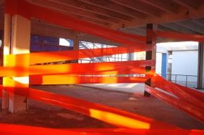 Pendant cinq jours, les Sly.M ont filmé le duo alors qu’ils couvraient 465m2 carrés d’espace vide, en utilisant uniquement de la peinture acrylique, des galets et du film plastique.