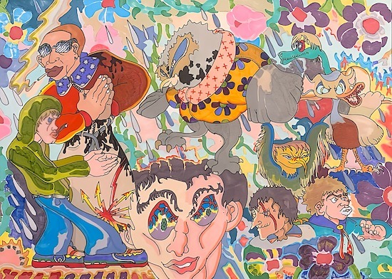Thami est un artiste pluridisciplinaire qui convie aussi bien le dessin, et le dessin animé, l’illustration, la sérigraphie ou le riso… Le dessin est moins un sacerdoce qu’il n’est ici jubilatoire et libératoire. Il est salvateur et cathartique. Plutôt que de figer les choses, Thami capte dans son trait le bruit du monde, son tumulte, son explosivité et surtout son chaos dans une myriade de couleurs et de mouvements.
