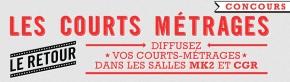 Après le succès rencontré en 2012, et plus de 4’000 diffusions dans les salles MK2 pour les courts-métrages sélectionnés, KissKissBankBank reconduit l’opération « Les Courts-Métrages, le Retour ». Pour la seconde année, les courts-métrages reviennent dans les salles MK2, permettant ainsi aux talents les plus prometteurs d’être découverts par le grand public.