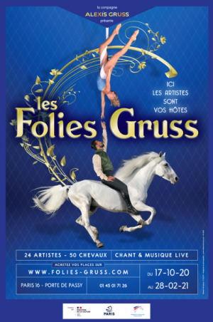 Dès le 17 octobre 2020, la Compagnie Alexis Gruss vous invite à découvrir sa nouvelle création Les Folies Gruss, dans le respect des consignes sanitaires. Jusqu’au 28 février 2021, la Compagnie Alexis Gruss relance les Folies, un concept en vogue à la Belle époque. Ces Folies Gruss allient spectacle et restauration. Ici, les artistes sont vos hôtes, annonce la compagnie qui propose de partager un moment festif, musical, convivial et gourmet, sous son célèbre chapiteau de la Porte de Passy. Découvrez un lieu hors du commun, une cuisine gourmande… Partagez un moment avec la famille Gruss avant d’assister à un grand show équestre et aérien, rythmé par un orchestre live. La magie du spectacle se prolonge hors piste avec des artistes de la chanson, de l’humour et de la danse. Les Folies Gruss promettent une expérience immersive d’un nouveau genre, pensée pour tous, à vivre de jour comme de nuit.
