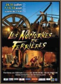 Sous la direction artistique et technique de Jean-Claude BAUDOIN, metteur en scène, le spectacle « Les Nocturnes de Ferrières » est entièrement conçu et réalisé par les bénévoles de l’Association Fêtes historiques de Ferrières, assistés de professionnels du spectacle tel des cracheurs de feux, ou des musiciens,… Le spectateur se trouve transporté au temps des fées, des sorcières et des mythes, et découvre des coutumes ancestrales dores et déjà oubliées. Ce spectacle original nous plonge dans l’imaginaire d’un metteur en scène, Jean-Claude BAUDOIN, grand spécialiste des spectacles à participation populaire.