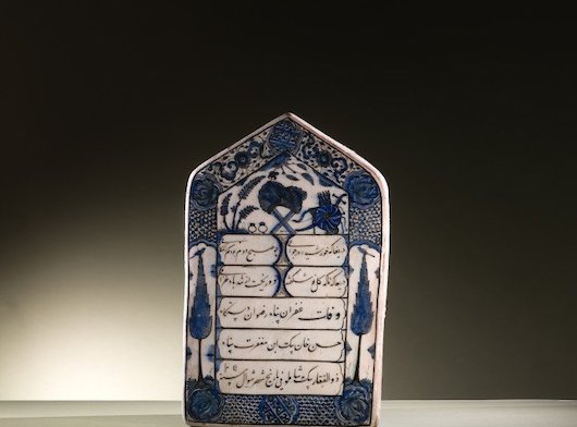- Stèle funéraire avec une épitaphe en graphie nasta’lîq, Iran, datée 1050H/1640, céramique à décor peint sous glaçure © IMA/A. Ricci
