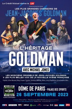 La tournée L’Héritage Goldman triomphe dans toute la France avec Michael Jones, les musiciens originels de Jean-Jacques Goldman et les plus belles voix de la nouvelle scène française : Céphaz, Lilian Renaud, Mary Cooper, Cyprien, Tomislav Matosin, Nérac, Jessy Elsa Palma, Anne-Sophie Seba…