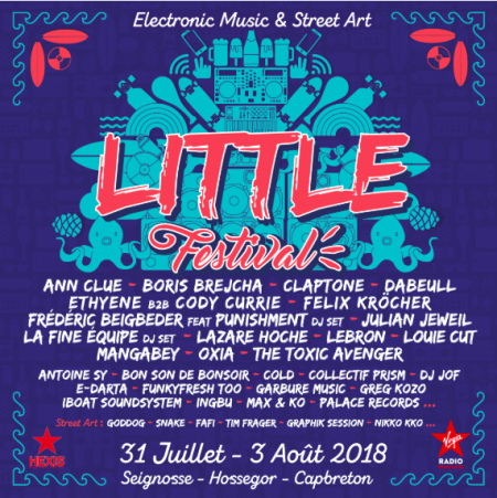 L’année dernière ils étaient près de 3000 festivaliers à se déhancher sur les vibes de Jabberwocky, Thylacine, Citizen Kain, Ann Clue ou encore DJ Pone. Le rendez vous est donné, cet été sur les plages landaises de Seignosse, Capbreton et Hossegor, du 31 juillet au 03 août pour le Little Festival 2018 ! Une seconde édition qui ravira de nouveau les amoureux d’électro et de street-art!