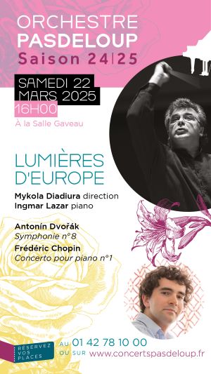 Avec l’Orchestre Pasdeloup et sous la direction du chef ukrainien Mykola Diadiura, voyagez dans l’Europe à l’époque de l’éveil des nations ! S’inscrivant dans ce mouvement du xixe siècle, Antonín Dvořák et Frédéric Chopin chantent, chacun à leur manière, leur patrie.