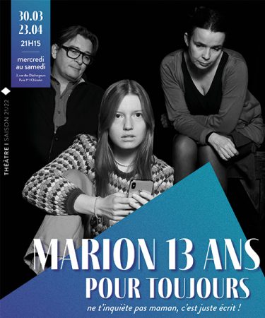 2013. Marion, la fille de Nora Fraisse, est victime d’harcèlement scolaire et de cyber-harcèlement. Nora Fraisse décide d’apporter son témoignage dans un livre « Marion 13 ans pour toujours », qui a été traduit dans une vingtaine de pays. L’histoire de ce succès, ainsi que celui qui a suivi du téléfilm éponyme de Bourlem Guerdjou, avec ses cinq millions de téléspectateurs, reflètent le besoin universel de cette parole. Je suis coach et actrice sur le tournage. 6 ans plus tard, Nora Fraisse me fait part de son envie de voir son récit au théâtre, et que je l’interprète. Malgré toutes les avancées en matière de prévention contre le harcèlement, malgré le combat sans relâche de Nora et de son association Marion la main tendue, la nécessité de porter ce texte au théâtre s’impose. Je me lance dans l’adaptation théâtrale, avec le metteur en scène Frédéric Andrau.