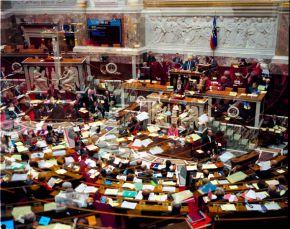 [Source texte: Galerie Anne Barrault // © Olivier Menanteau, Politiciens au travail à l’Assemblée Nationale] |