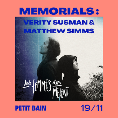 Memorials : Verity Susman et Matthew Simms en concert au Petit Bain le 19 novembre