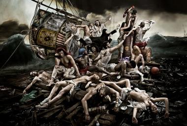 Pour cette série des « Métamorphoses », constats des mutations qui secouent l’histoire contemporaine, Rancinan s’est référé à huit chefs d’œuvres de l’art pictural. A travers le Caravage, Bosch, De Vinci, Velasquez, Géricault, Delacroix… il établit avec éclat et maestria un lien avec l’histoire de l’art portant sur les grands enjeux humains et donnant un regard engagé, forcément subjectif et puissamment symbolique sur l’évolution de l’homme.