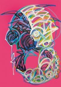 On est sans mots devant les portraits colorés de Miguel Marajo. Attention aux yeux, ça jette le fluo et ça sature de lumière noire ! Les traits de caractères de ses personnages sont bariolés, voir maculés de cosmétique carnavalesque. On est pas si loin des figures à la Basquiat ou à la Keith Haring, mais version « Street Humanoïdes » rectifiées au Karcher !!