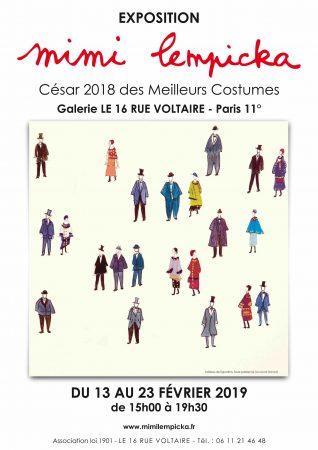 Fabienne KRIEGEL, ex-directrice générale des Editions du Chêne / EPA, à qui l’on doit la publication du livre : Les costumes font leur cinéma, exposera les dessins et maquettes des costumes créés par Mimi Lempicka, pour faire découvrir au grand public, le processus de création, à la galerie Le 16 Rue Voltaire à Paris, du 13 au 23 février 2019.