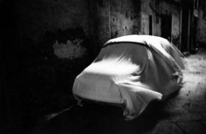 Parallèlement, les signes baroques de la mort infiltrent l’oeuvre : crânes et squelettes qui évoquent les Vanités picturales, mais aussi dépouille du Christ, madones figées, hiératiques, mortes peut-être sous les cloches de verre qui les emprisonnent, et cette voiture, photographiée à Naples, immobile, défunte de toute vitesse, tout entière recouverte d’une housse blanche comme d’un catafalque.