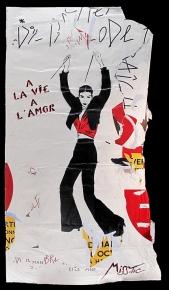 Ses femmes, ses silhouettes de femmes, ses pochoirs : elle est chacune d’elles. Dans ses dernières œuvres, des hommes s’immiscent… s’introduisent… Même des couples apparaissent. Aurait‐on vu passer aussi un trio libertin ? Fragments sur affiches déchirées, sur des morceaux de palissades, pièces mixtes, pochoirs sur tôles, pochoirs sur toiles… L’artiste installe à la Galerie W une trentaine d’œuvres inédites et uniques pour une exposition vivante, amoureuse, passionnée, poétique et éminemment artistique. La poésie ne raconte pas d’histoire.