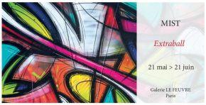 Du 21 mai au 21 juin 2015 Mist est représenté par la Galerie LE FEUVRE depuis 2009. Après New Paintings & Sculptures, Hypoténus et Son of Actarus, Extraball est sa quatrième exposition au 164 Faubourg Saint-Honoré. Quand on feuillette les blackbooks de Mist, on découvre des pépites d’esquisses wild style datant de la première moitié des années 90. On se dit alors que l’artiste a un coup de crayon remarquable. Et lorsqu’on tombe sur les photos montrant ces esquisses peintes, on comprend également qu’il manie la bombe de peinture avec une dextérité hallucinante. On se rappelle alors qu’en 1991, Mist était convié au Musée des Monuments Français à Paris pour l’exposition Graffiti Art, la première du genre en France. Alors on comprend finalement que Mist mérite bien sa réputation d’artiste parmi les plus talentueux de la scène contemporaine urbaine française.