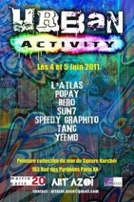 Urban Activity (de 14h jusqu’à demain à 19h) : après les Lilas en février dernier, Speedy Graphito, L’Atlas, SUN 7, Yeemd, Rero, Tanc et Popay investissent le mur du square Karcher (ça ne s’invente pas) et réaliseront une fresque collective “de l’autre coté du périphérique”. Un mur de 40 mètres de long…
