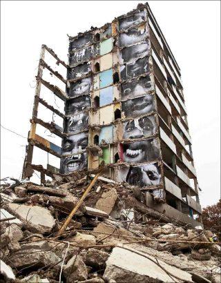 JR, 28 Millimètres, Portrait d'une génération, B11, destruction #2, Montfermeil, France, 2013 © JR-ART.NET