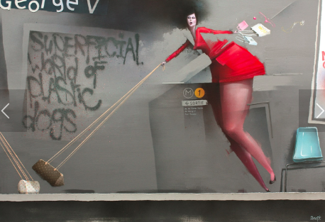 Son univers figuratif met en scène des personnages déstructurés, qui sont le reflet de la dérision du monde dans lequel nous vivons. Dans sa série “En attendant le métro”, il s’affranchit des codes esthétiques traditionnels et s’amuse à exagérer les traits physiques pour laisser transparaître la nature profonde de l’individu. Volontairement déformés, les corps expressifs nous livrent, à eux seuls, le scénario à la fois drôle et dramatique d’une société déshumanisée.
