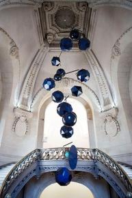 « Producers » est une nouvelle série de sculptures réalisées d’après des scans en 3D dans une gamme de matériaux variés, du bois au métal. Eclectique, la série dresse un panthéon personnel de l’artiste, dans la lignée de la série « Les Architectes », présentée au Château de Versailles en 2009. De facture réaliste et détaillée, cette nouvelle série s’éloigne du traitement facetté qui était de mise pour une grande partie des précédents portraits de Xavier Veilhan, et entérine le retour à une figuration plus brute. « Le Mobile (Music) », assemblage monumental d’une trentaine de sphères, ainsi que plusieurs « Mini Mobiles », font écho à la musique créée par les producteurs. [Ingrid Luquet-Gad]