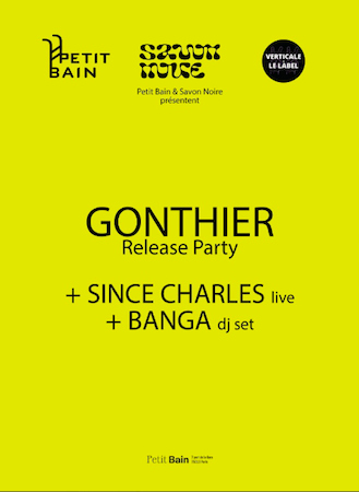 Petit Bain & Savon Noir présentent : La release Party de Gonthier (live) + Since Charles (live) + Banga (DJ set). Le choix des deux artistes qui partageront l’affiche à l’occasion de la release Party de Gonthier n’est pas anodin. Ce sont deux artistes qui reflètent son esprit et ses inspirations, mêlant live & DJ set.