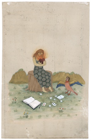 Ses nouveaux dessins réinventent une nature où les formes humaines se mêlent aux formes animales, où corps et puissances invisibles s’unissent en une même et envoûtante étreinte. Traversées d’un puissant élan vital, ses compositions sont le fruit d’un regard émancipé qui insuffle aux corps désir et puissance. D’abord profondément inspirée par les enluminures du Clavis Artis, un manuel d’alchimie de la fin du XVIIe ou début du XVIIIe, les miniatures de Karine Rougier entrent en résonance avec le monde d’aujourd’hui, abordant l’urgence climatique, la puissance de la nature et la relation des êtres vivants aux éléments symboliques. “Nous sommes les enfants d’un monde dévasté, qui s’essaient à renaître dans un monde à créer. Apprendre à devenir humain est la seule radicalité” Raoul Vaneigheim.