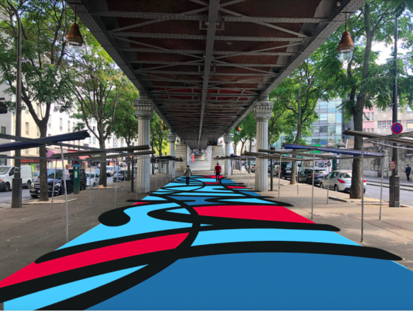 C’est sous la mythique station aérienne du métro parisien Barbès, que l’artiste montpelliérain Momies a décidé de s’installer dans le cadre de ce nouveau projet mené par la Galerie Itinerrance.